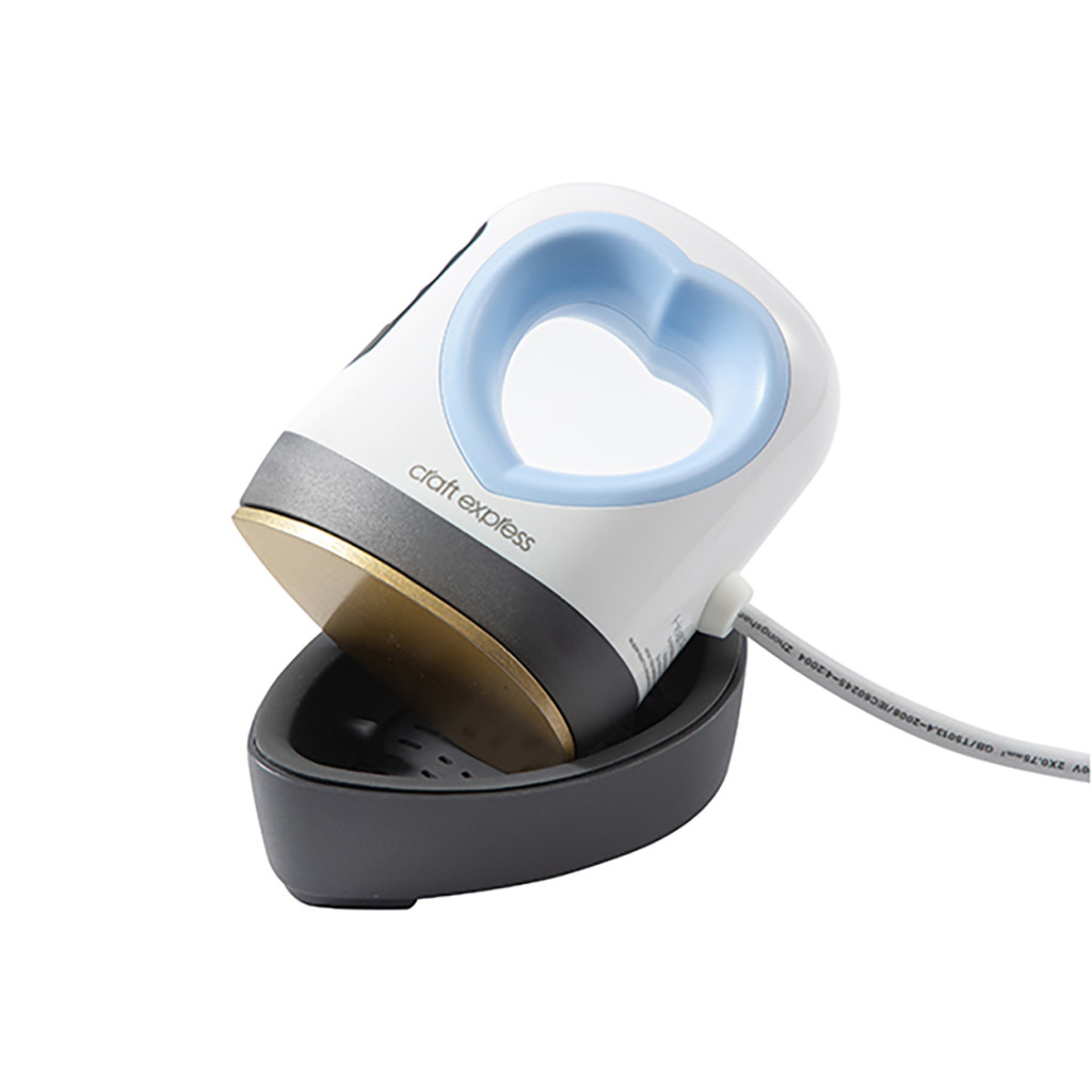 Kompakt méretű, 6x9cm-es mini sík hőprés nehezen hozzáférhető felületek (pl. gombok között, varrás mellett) vasalásához.