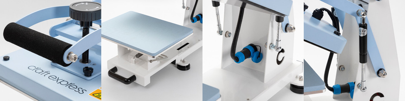 A Craft express 9in1 Multifunkciós hőprés ár-érték arányban kiváló, belépő szintű megoldás, mely ideális kezdő vállalkozók számára, akik szeretnének sokféle termékkel belépni az egyedi ajándéktárgy- és reklámajándék gyártás piacára. Két, különböző méretű fűtőtálcájának és számos, az alap szerkezethez csatlakoztatható speciális vasalóegységének köszönhetően egyetlen géppel gyárthatsz sík tárgyakat, bögréket, baseball sapkákat, tollakat, és még sok más nyomtatható szublimációs tárgyat, nem szükséges külön beruháznod sík hőprés, bögrehőprés, sapkaprés, és más speciális hőprés vásárlásába.
