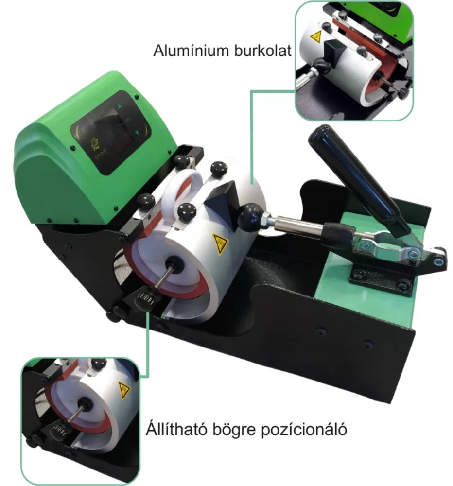 A Galaxy Mug Pro GS-203 bögre hőprés kiváló megoldás standard és egyéb méretű bögrék gyártásához.