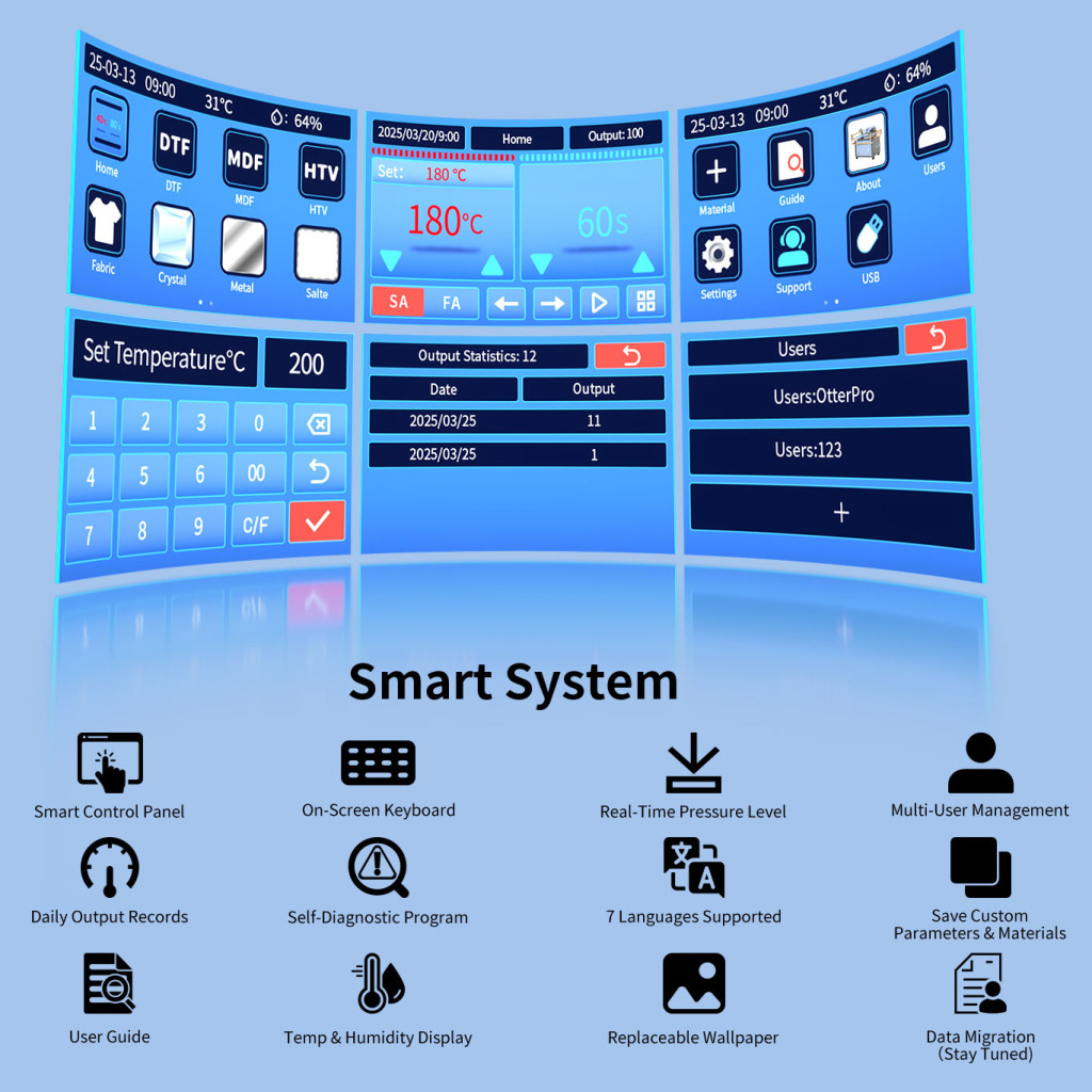 OtterPro Full automata dupla asztalos hőprés automata pneumatikus rendszerrel rendelkezik, amely megkönnyíti a munkádat és konzisztens, egyenletes nyomóerőt biztosít, ami kulcsfontosságú a magas nyomatminőség eléréséhez.