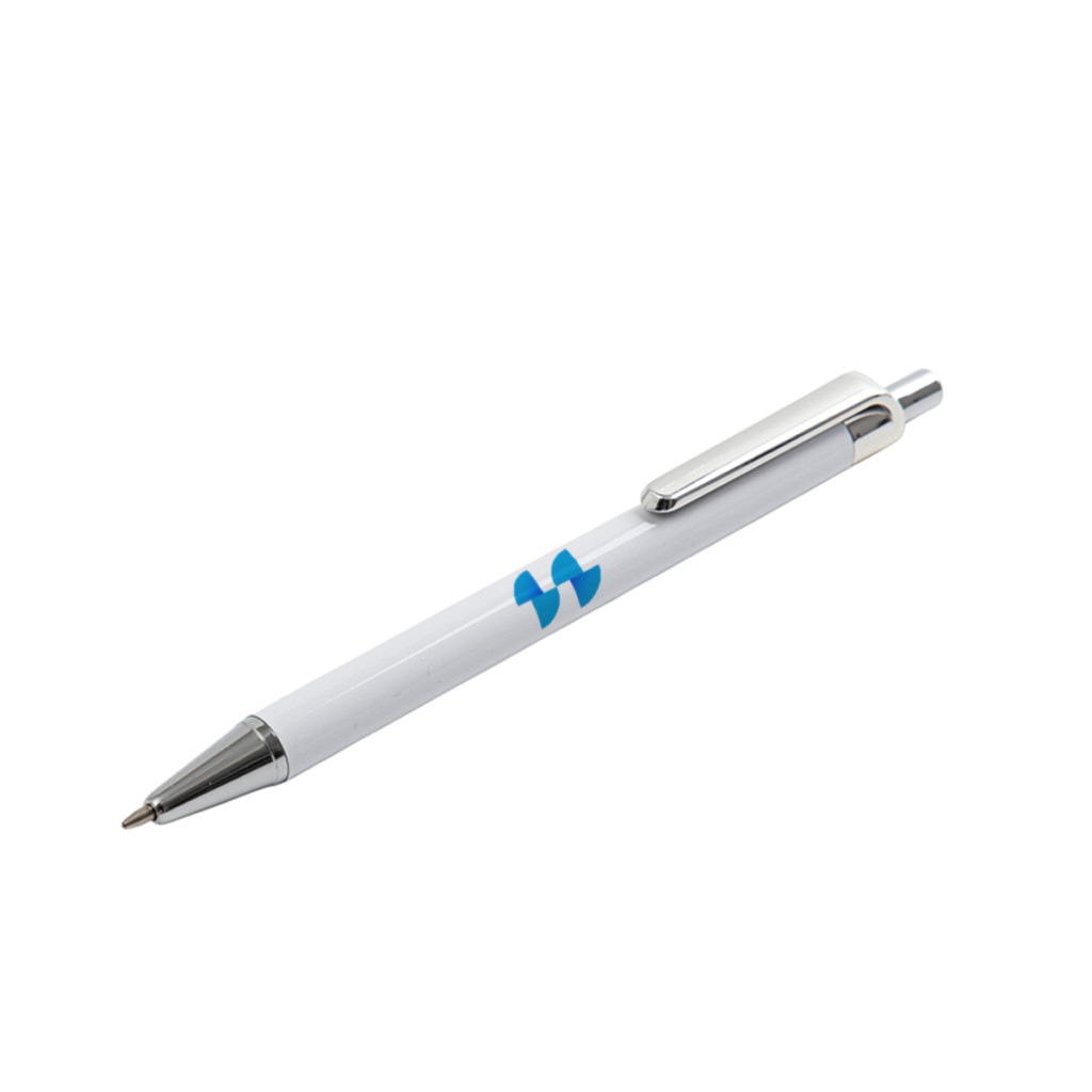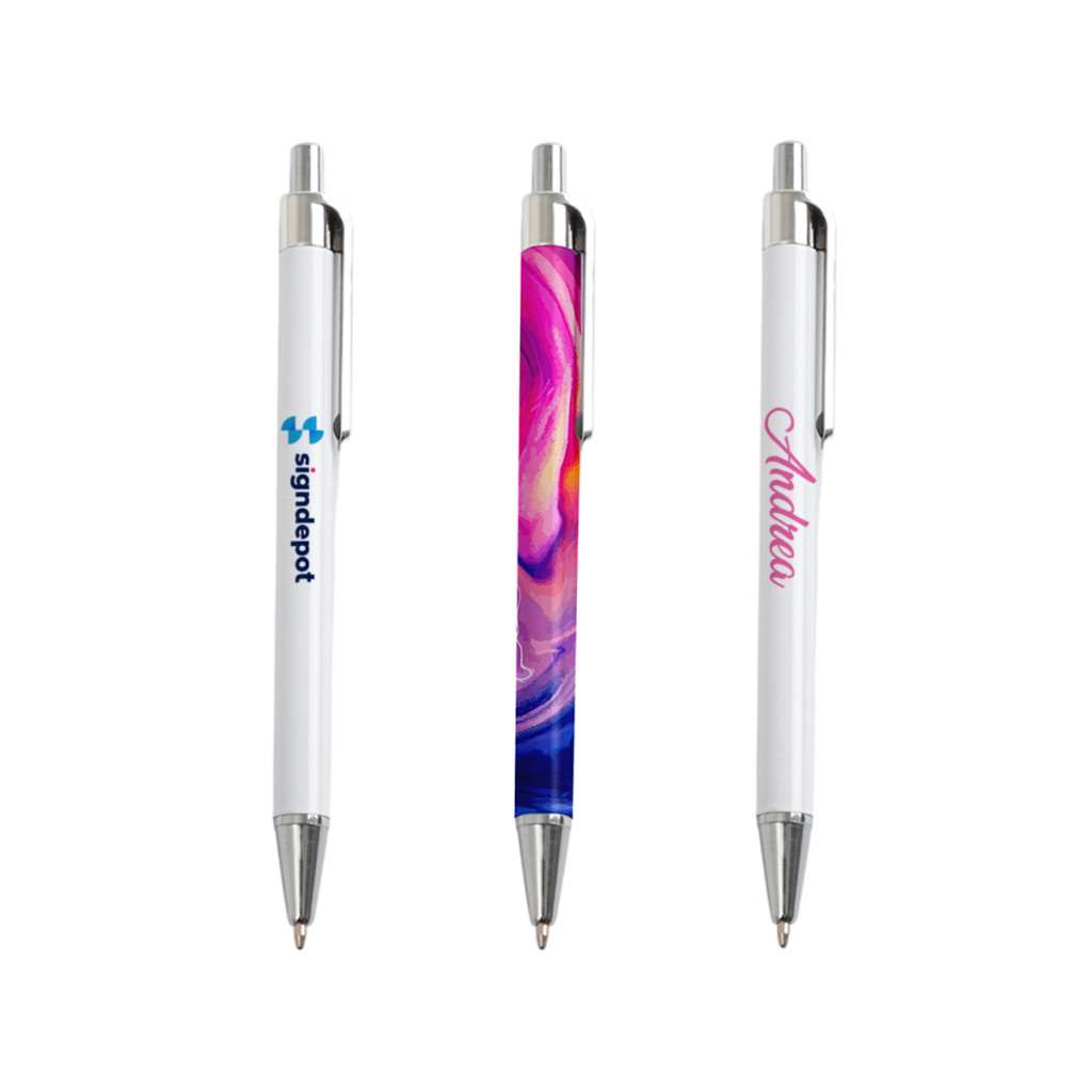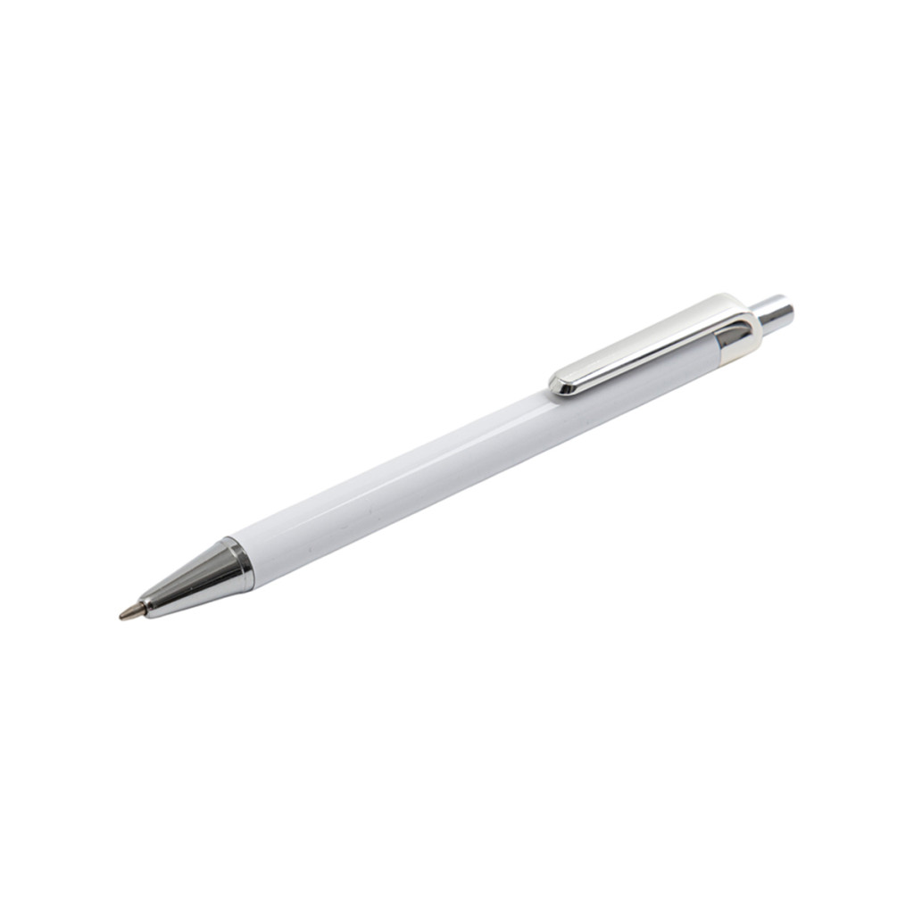 Sublimation pen with silver ends and clip and with white, sublimable barrel.