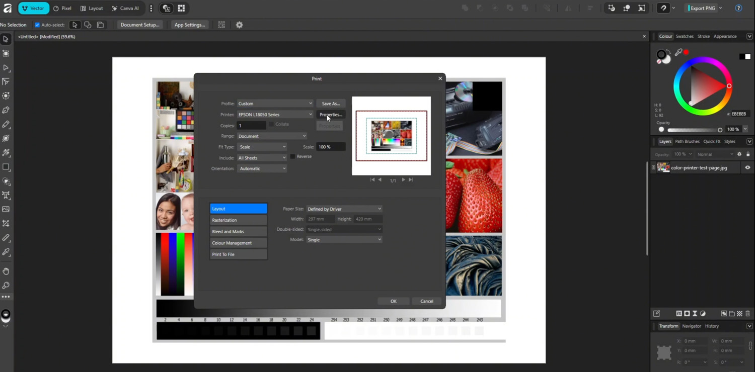 You can stop searching, as a brand new software, Affinity became available for completely free in October 2025. Affinity has great advantages over other free software. Besides pixel graphics it can also handle vector graphics. What's even more advantageous for you is that the printer also handles color profiles, so you can print with perfect color accuracy from a free program to your desktop sublimation printer, just like from Photoshop, Illustrator or Corel.
