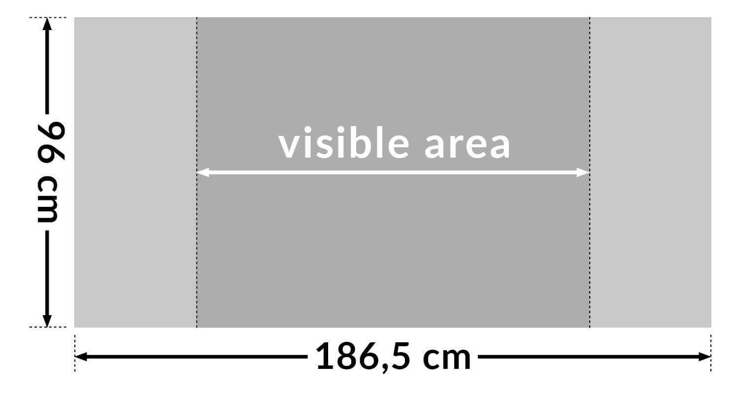 Vidno območje: Tukaj postavite vse pomembne predmete, kot so besedila, logotipi, fotografije. Le ozadje naj bo v „bleed area“ (območju za rezanje).