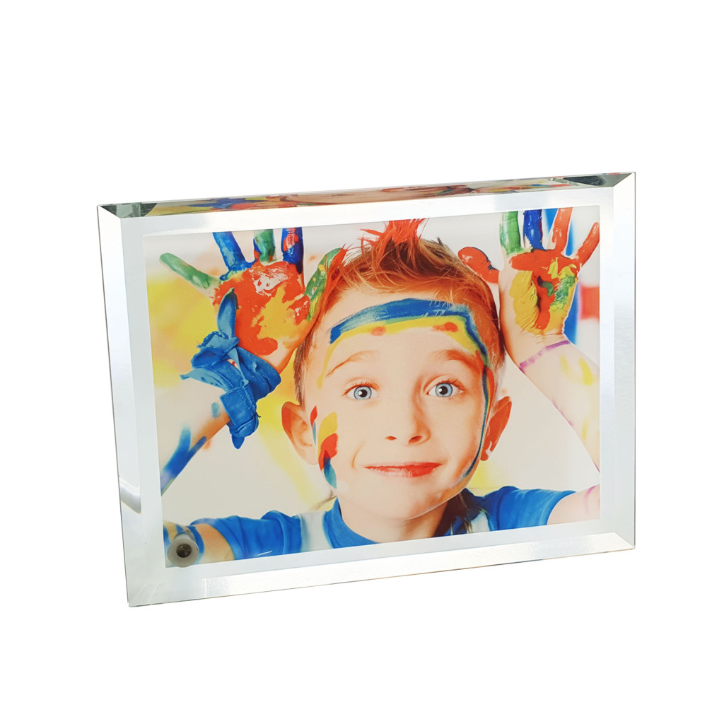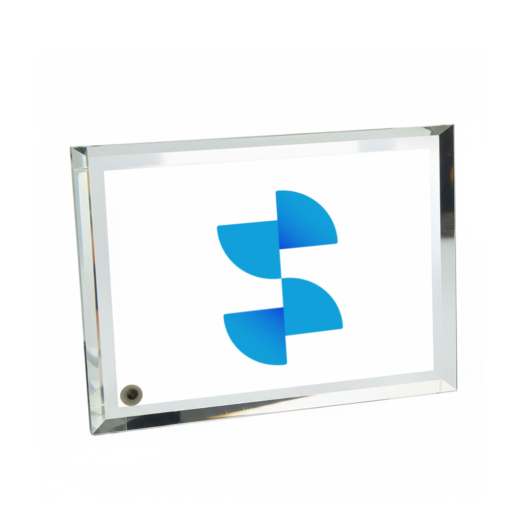 Szublimációs technikával nyomtatható tömör üveg asztali dísz. A teljes felületen nyomtatható.